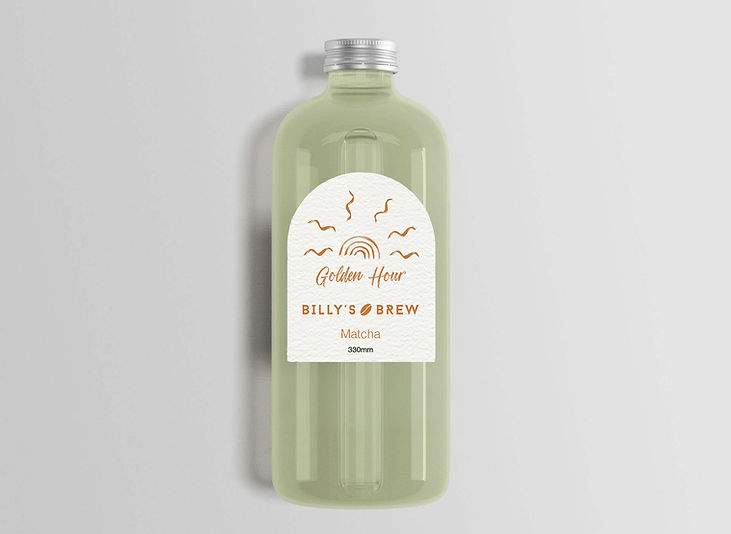 ​Golden Hour is Billy’s brew new cold brew Matcha, it has a smooth blend, vibrant and earthy colour with a hint of sweet vanilla. With a vibrant theme I am drawn to a glowing sunset and warm tones. The label design will display a continuous feel with wavy lines representing a golden sunset.